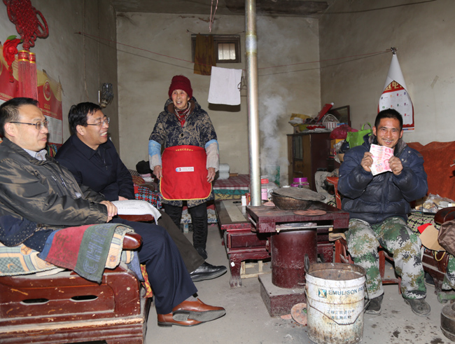 李跃民冒着严寒走访了贫困户王玉安家,为他们送去过年的慰问品和慰问金,并与王玉安促膝交谈,详细了解他和家人的身体状况、家庭收支情况和目前存在的困难。