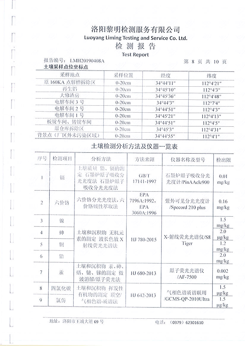 河南万基铝业股份有限公司(一分厂)土壤检测报告公示